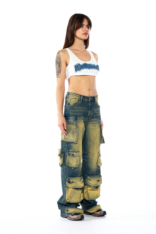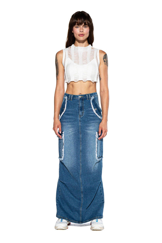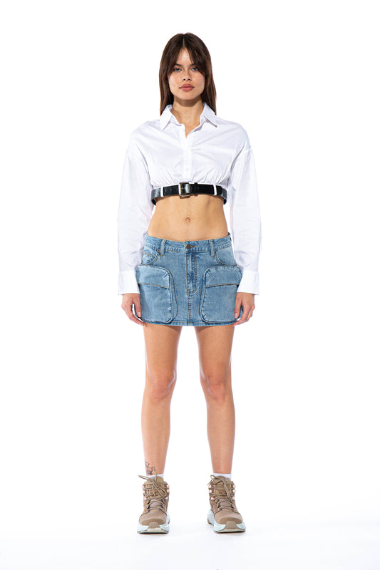Cargo Pocket Strappy Denim Micro Mini Skirt