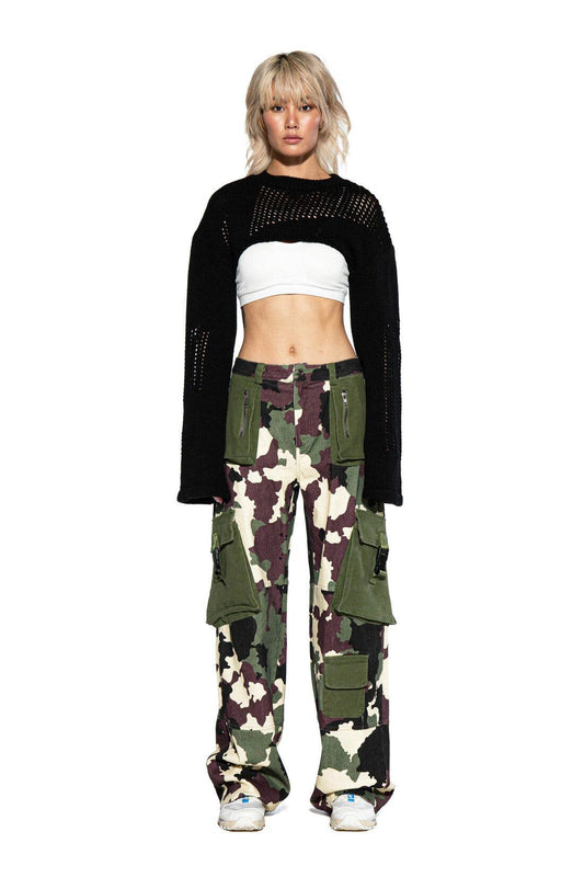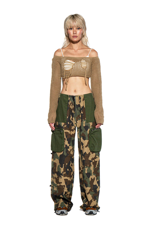 CAMOUFLAGE PRINTED MESH CARGO PANTS