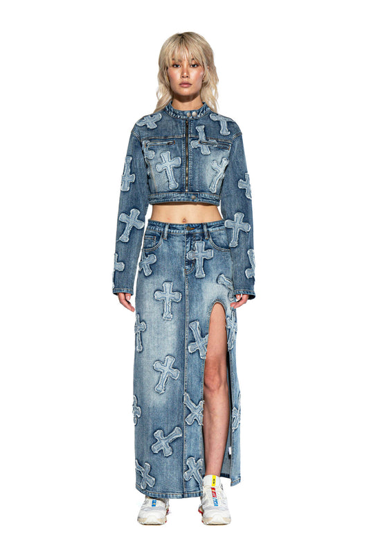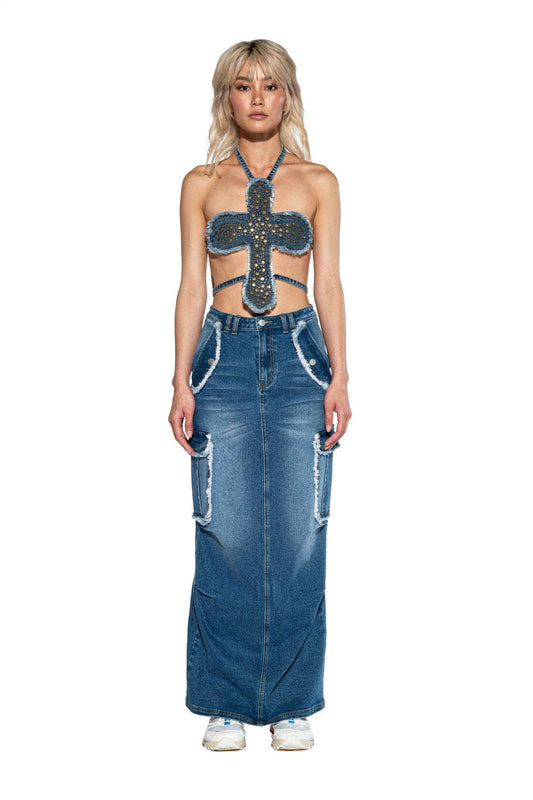 Crochet Peplum Top and Maxi Skirt Knit Sweater Set