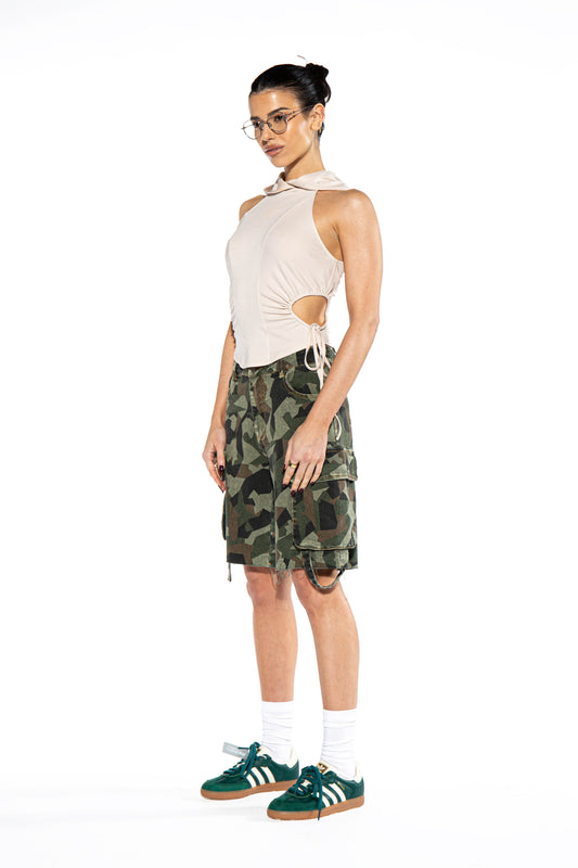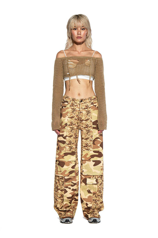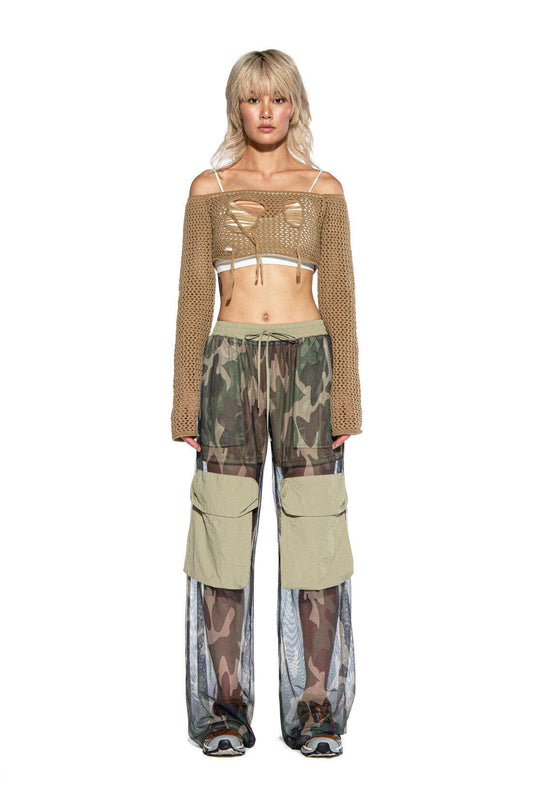 CAMOUFLAGE PRINTED MESH CARGO PANTS