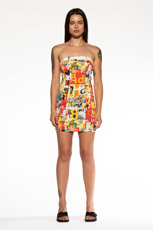 Color Printed Tube Mini Dress