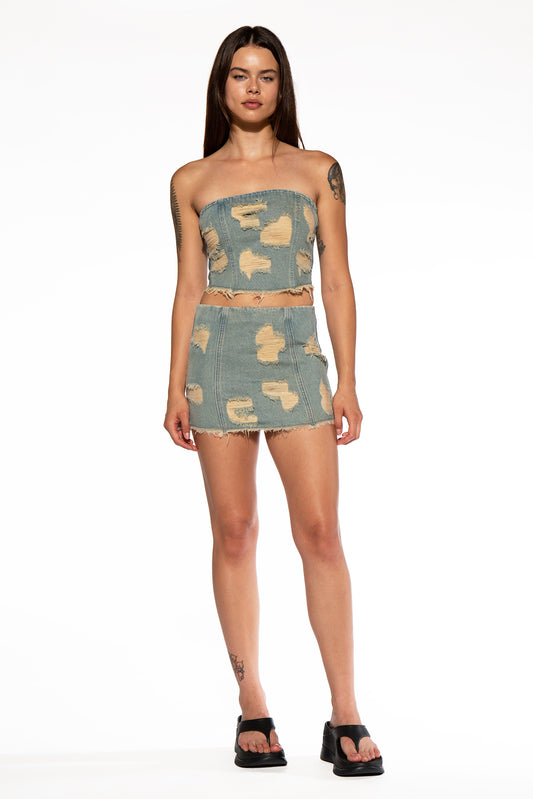 Over All Distressed Denim Tube Top
