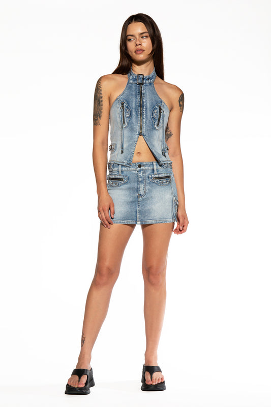 Denim Rope Top & Mini Skirt Set
