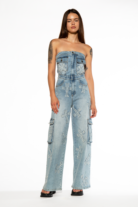 CARGO JUMPSUIT WITH CROSS PATCH