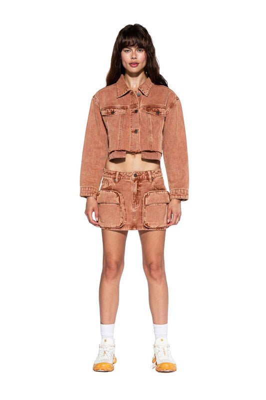 SNOW WASHED TWILL CROPPED TRUCKER JACKET