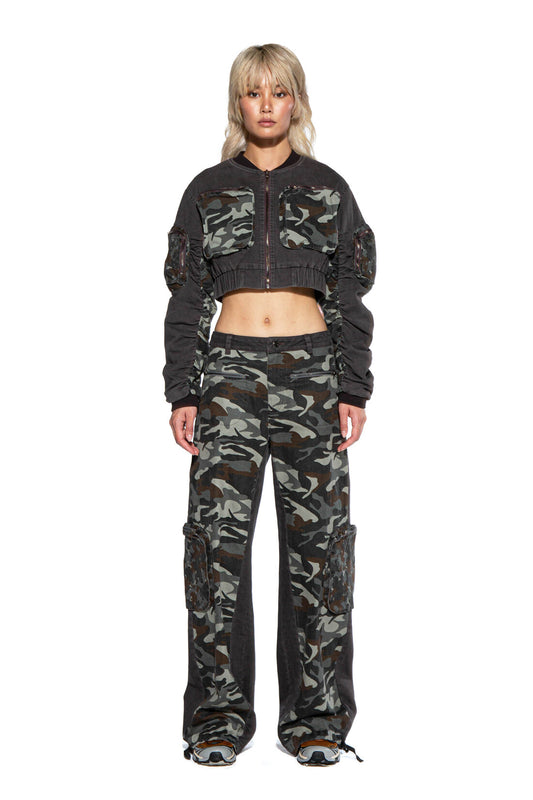 CAMO PATCH CARGO BOMBER JACKET