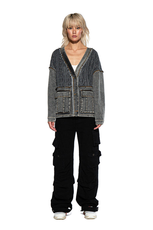 DENIM SWEATER COMBINATION CARDIGAN