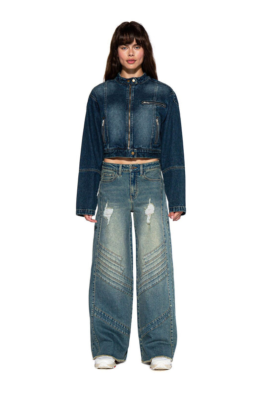 FADED DENIM MOTO JACKET