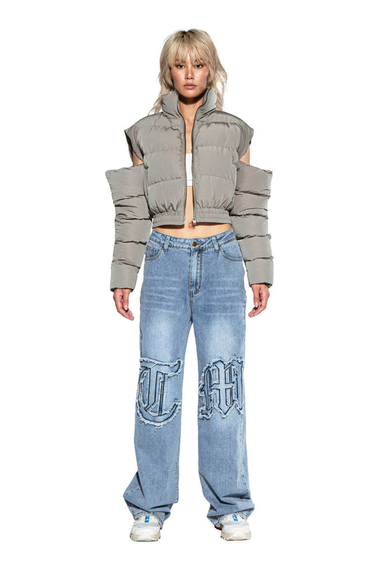 CUT OFF SHOULDER PUFFER JACKET