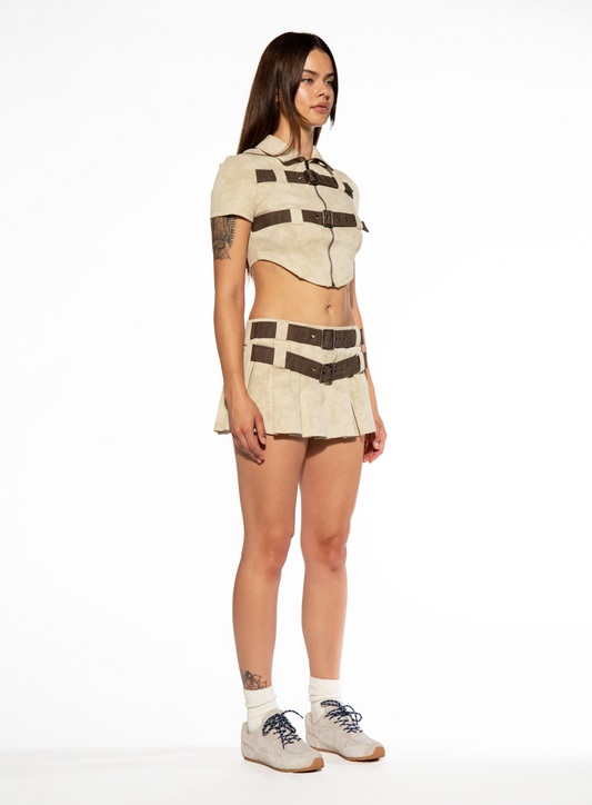 Moto Collar Cross Patch Top & Mini Skirt Set