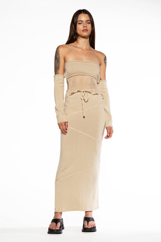 Crochet Peplum Top and Maxi Skirt Knit Sweater Set