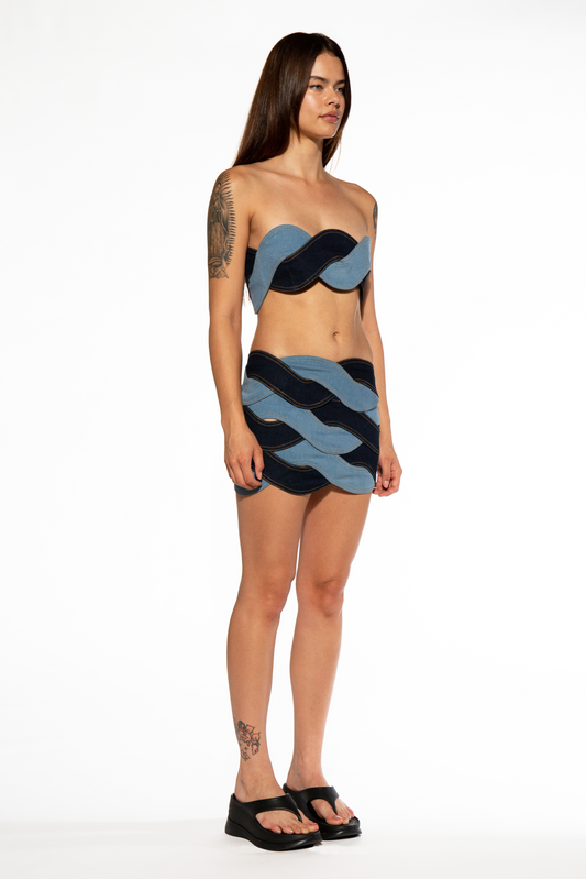 DENIM CORSET TOP & PLEATED MINI SKIRT SET