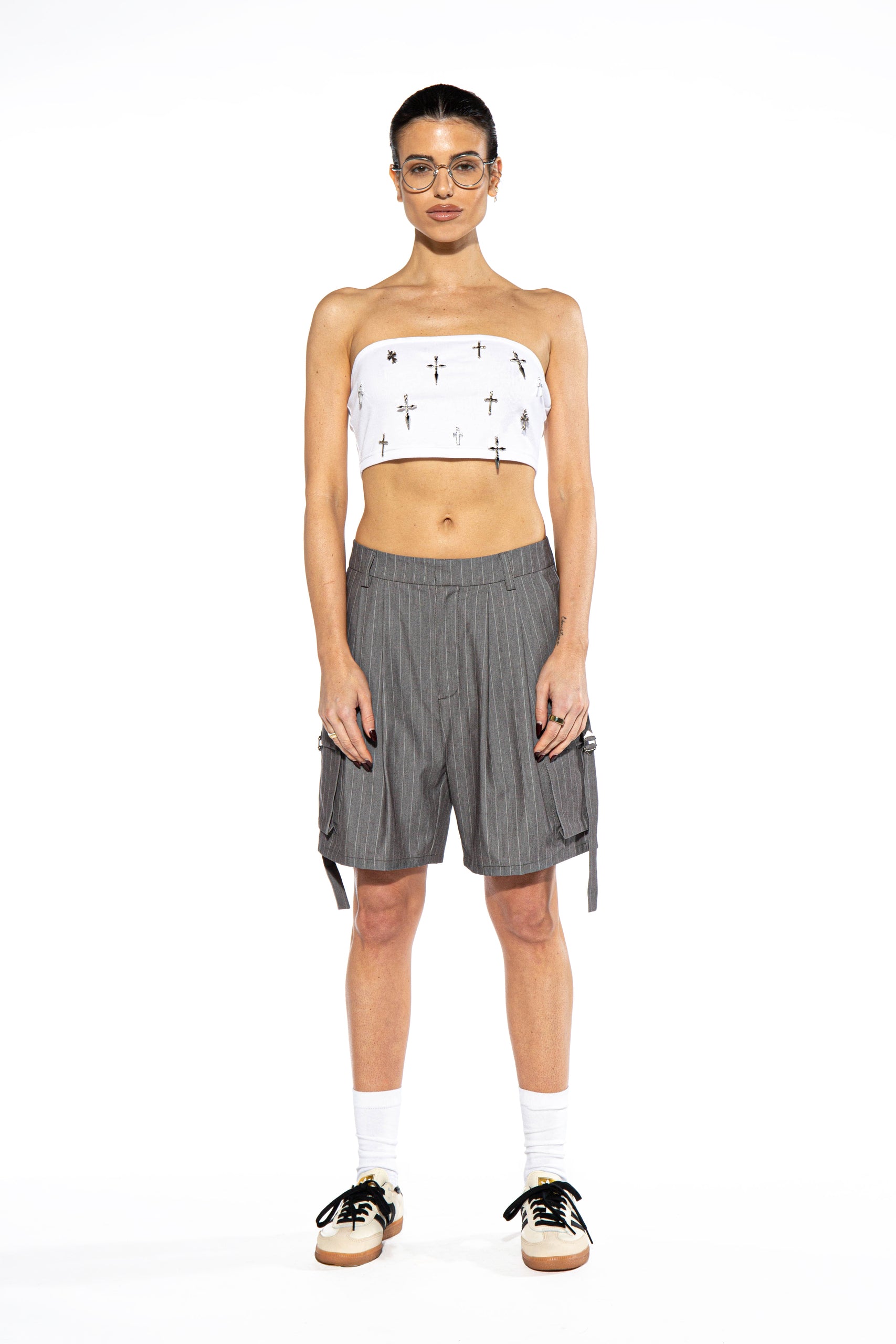 Cross Pendant Knit Jersey Tube Top