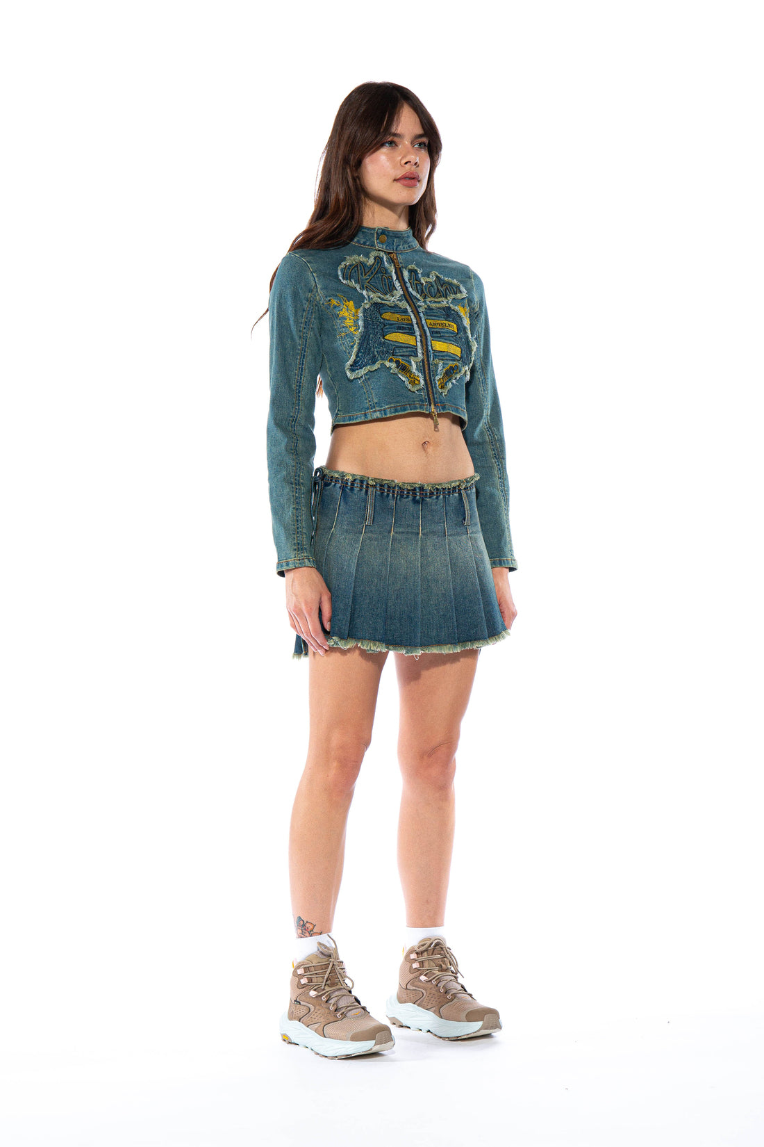 Vintage Tinted Denim Pleated Mini Skirt