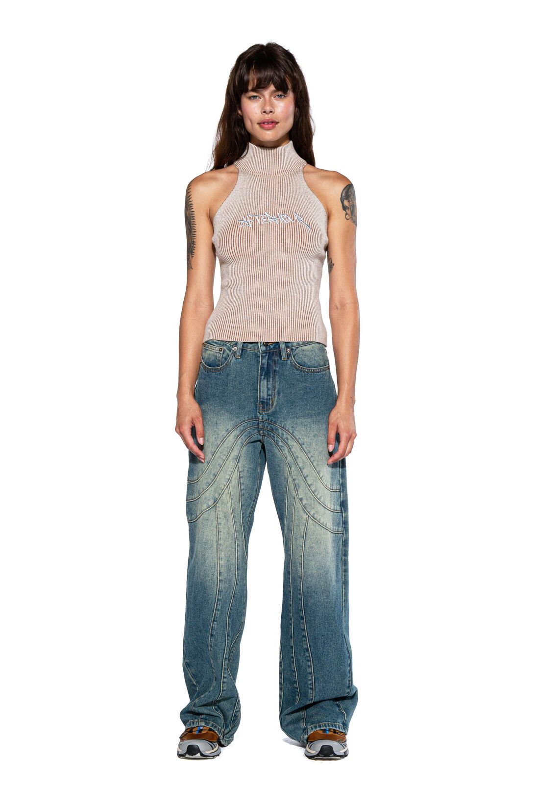 VINTAGE WASHED STITCH WORK BAGGY JEAN